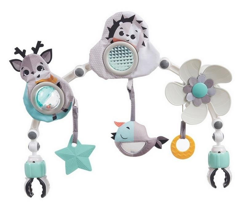 Łuk z zabawkami Tiny Love to wyjątkowe akcesorium dla niemowląt, które w prosty sposób przekształca wózek, fotelik samochodowy czy leżaczek w angażujące i rozwijające środowisko do zabawy. Dzięki interaktywnym zawieszkom, regulowanemu pałąkowi oraz łatwemu montażowi za pomocą uniwersalnych klipsów, ten edukacyjny zestaw gwarantuje wsparcie rozwoju sensorycznego, motorycznego i poznawczego już od pierwszych dni życia dziecka.