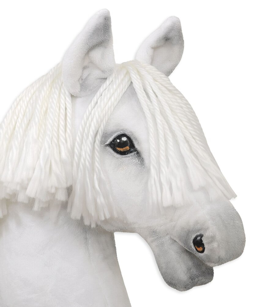 Biały, duży koń na kiju z miękką, długą grzywą to idealna zabawka dla wszystkich dzieci, które kochają konie. Hobby Horse to doskonała forma aktywności, sprawdzająca się zarówno w pomieszczeniach, jak i na świeżym powietrzu. Nasze Super Hobby Horse są ręcznie wykonane z dbałością o każdy szczegół, wykorzystując atestowane surowce z certyfikatami Oeko-Tex Standard, co zapewnia bezpieczeństwo i radość podczas zabawy.