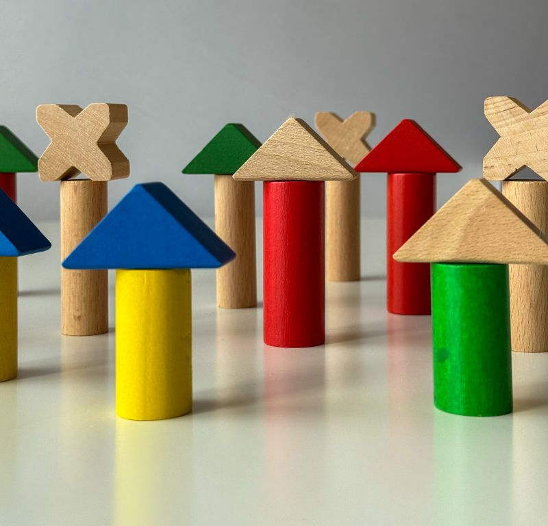 - klasyczne, drewniane klocki dla dzieci od 3 roku życia,