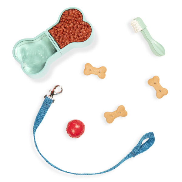 - w zestawie znajdują się akcesoria, takie jak smycz, obroża, miski, przysmaki i piłeczka,