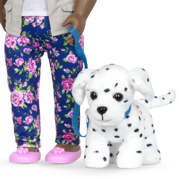 W skład zestawu Piesek dalmatyńczyk w torebce Hop in Dog Carrier Our Generation BD35181Z wchodzą: