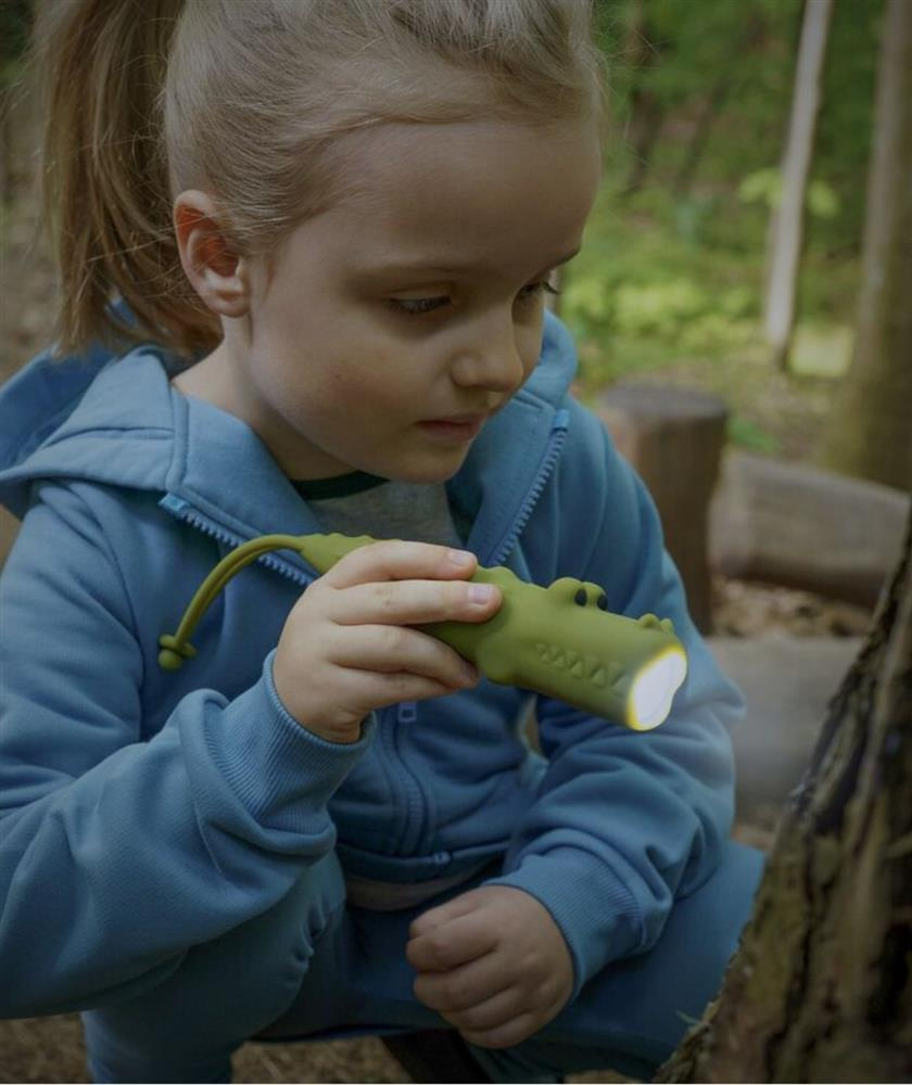 Ale to nie wszystko! Krokodyl Croco ma specjalną regulację jasności, dzięki której można dostosować intensywność światła do własnych potrzeb. Chcesz rozświetlić całą sypialnię przy wieczornych opowieściach? A może wystarczy subtelne światło, by stworzyć magiczną atmosferę na teatrze cieni? Opcja regulacji jasności sprawia, że jest to idealna latarka zarówno do codziennej zabawy, jak i do specjalnych nocnych rytuałów.