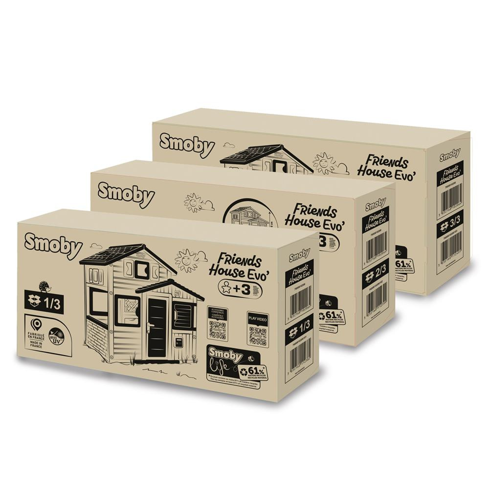 Smoby Life domek ogrodowy Evo to uniwersalne rozwiązanie dla rodzin poszukujących wysokiej jakości, trwałej i ekologicznej zabawki, która zapewni dzieciom wiele godzin aktywnej zabawy na świeżym powietrzu.