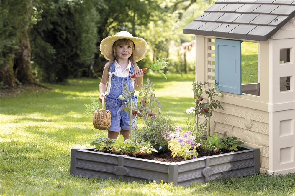 • Skrzynia 2w1 – może pełnić funkcję piaskownicy (mieści do 100 kg piasku) lub ogródka do uprawy roślin (do 70 kg gleby).