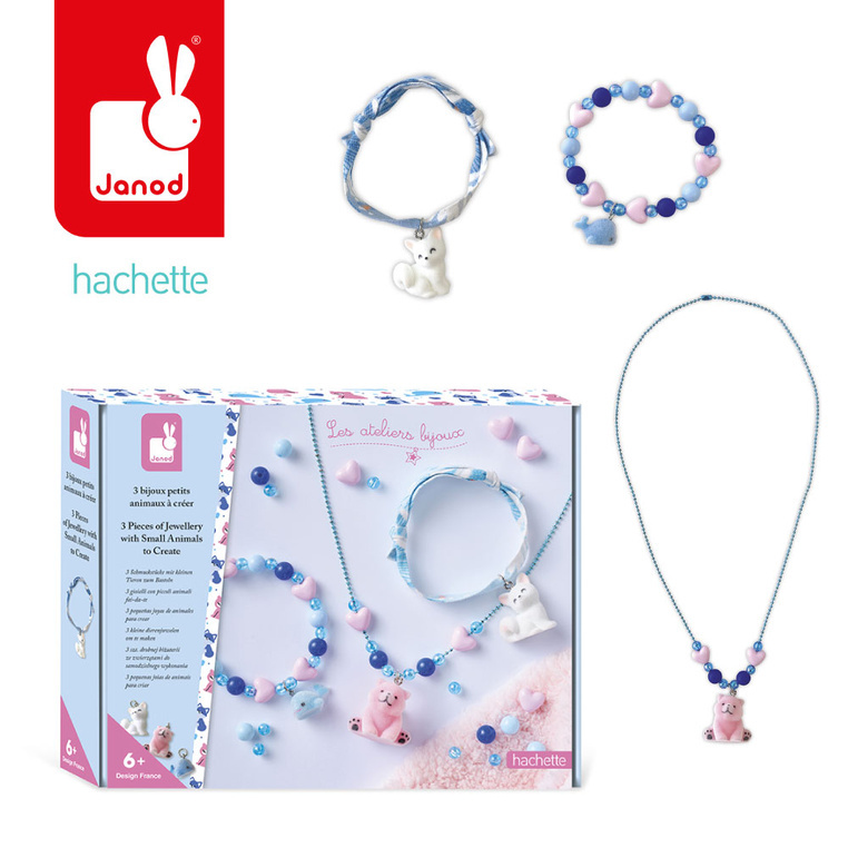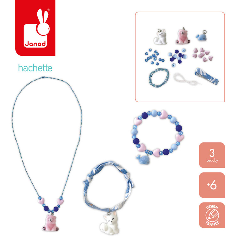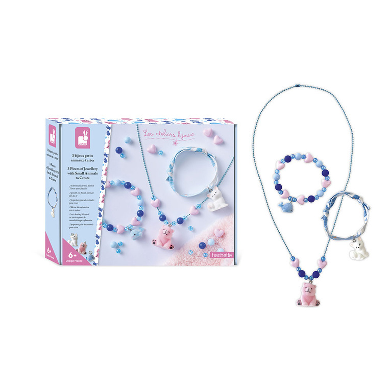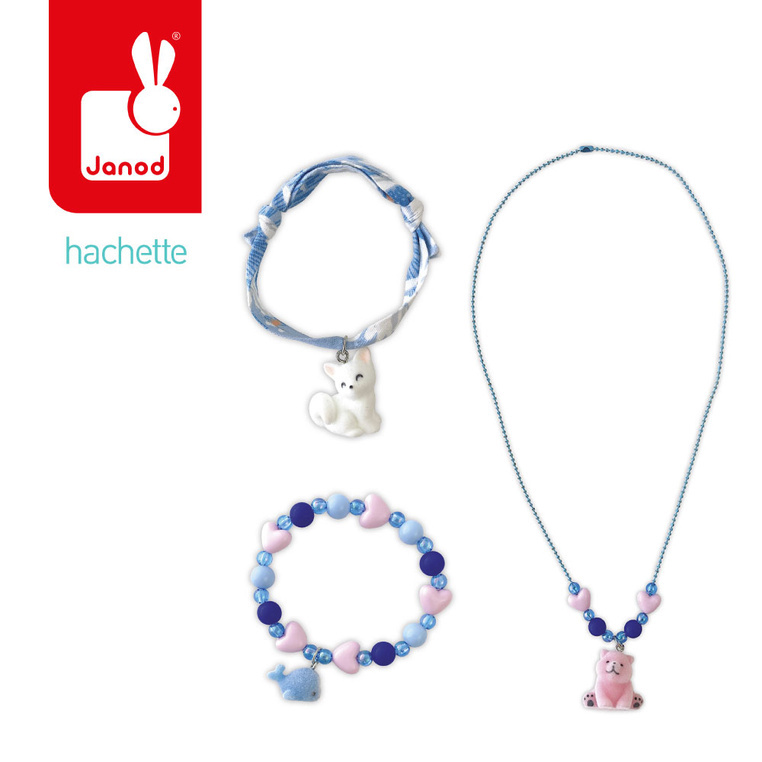 Twoje dziecko uwielbia tworzyć własną biżuterię? Zestaw kreatywny do tworzenia biżuterii z zawieszkami Małe zwierzątka Janod pozwala na wykonanie aż 3 unikalnych ozdób: jednego naszyjnika i dwóch bransoletek.