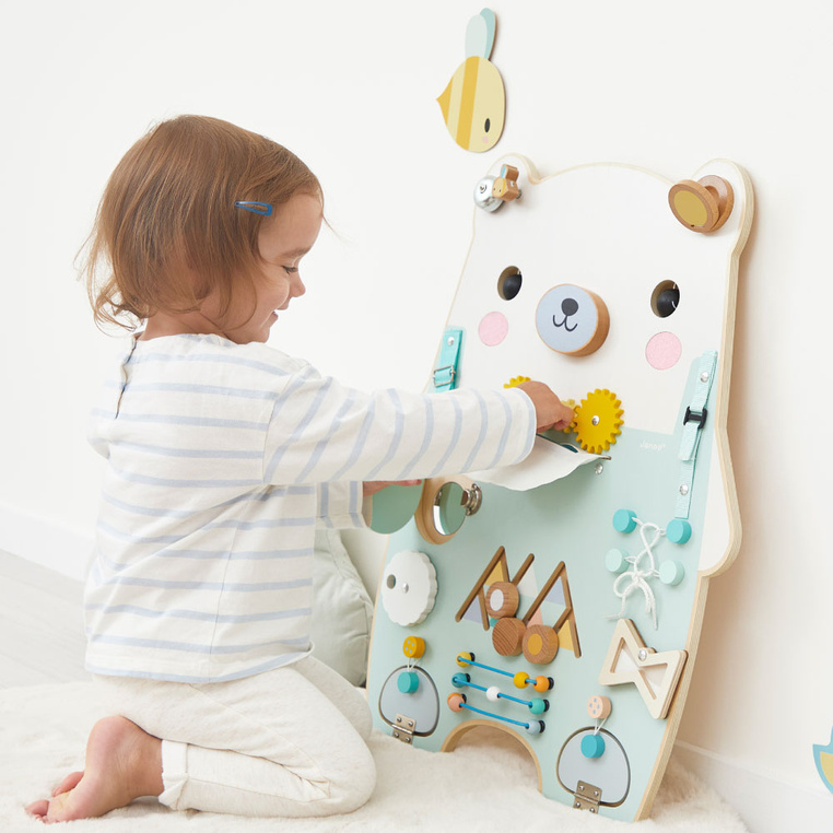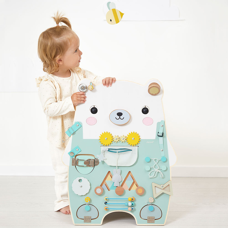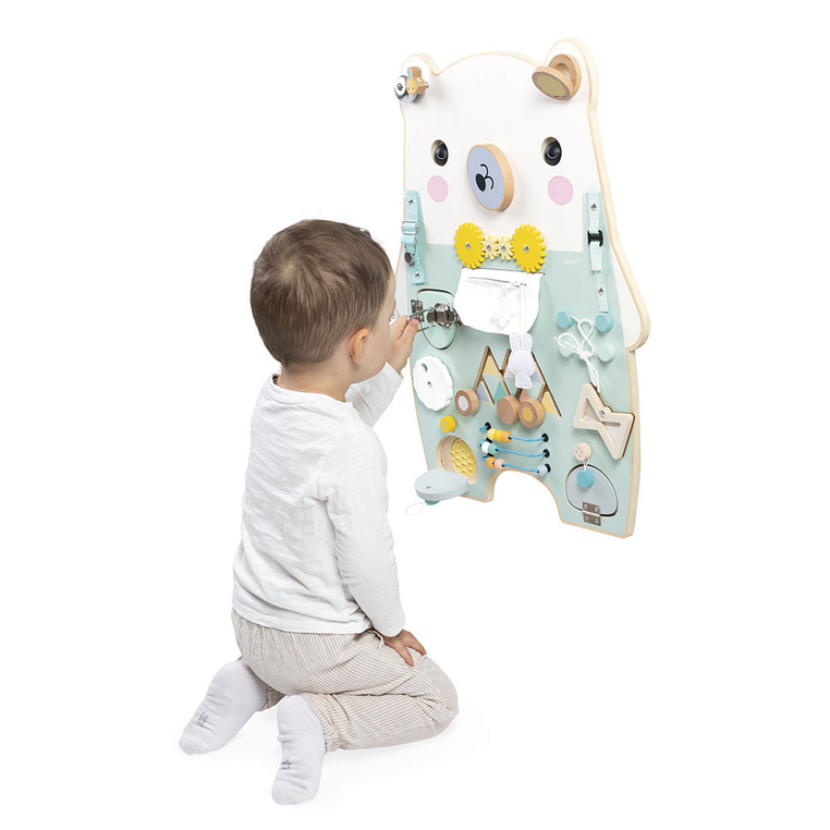 Dziecięca ciekawość nie zna granic, a odpowiednio dobrana zabawka może stać się przepustką do fascynującego świata odkryć. Drewniana tablica manipulacyjna Miś Pure Janod to prawdziwa stacja eksperymentalna dla małych rączek i spragnionych bodźców zmysłów. Znajduje się na niej aż 20 różnorodnych aktywności, które bawią, ale przede wszystkim wspierają rozwój dziecka.