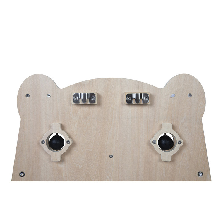 Ciepłe kolory drewna w połączeniu z pastelowymi akcentami zieleni i żółtego tworzą harmonijną całość, która wpasuje się w każde wnętrze dziecięcego pokoju czy sali zabaw. Zabawkę można przymocować do ściany, co zapewnia stabilność i komfort użytkowania.