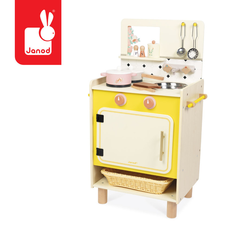 Kuchnia drewniana dla dzieci z 10 akcesoriami Shiny Grandma Janod wyposażona jest w: