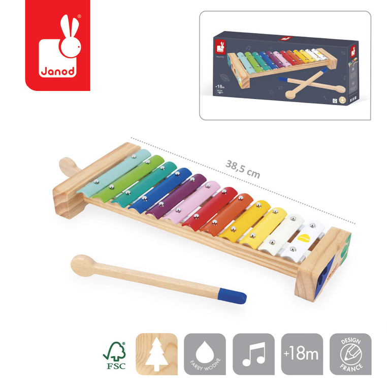 Pozwól maluszkowi przekroczyć bramy zaczarowanego świata muzyki i razem odkrywajcie tajemnice dźwięków. Każdy kolejny ton, każda wibracja, to nowa przygoda, która rozwesela, pobudza wyobraźnię i rozwija zdolności manualne. Ksylofon cymbałki Gioia Janod to doskonała zabawa, która uczy dziecko podstawowych zasad muzyki i rytmu, a robi to w najbardziej naturalny i przystępny sposób.