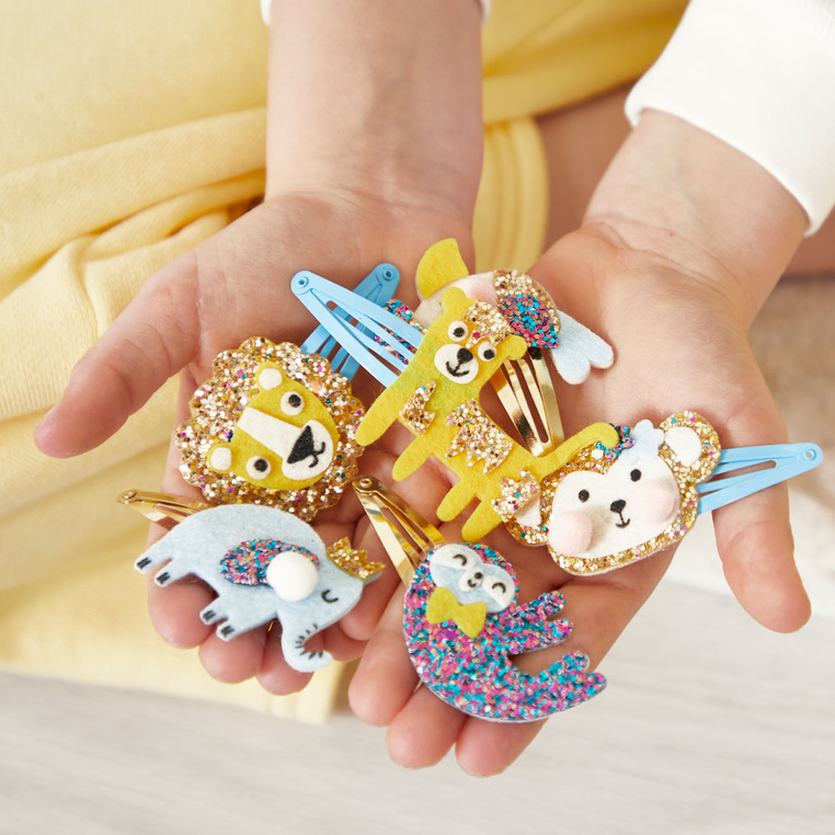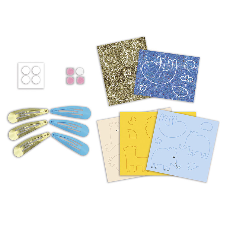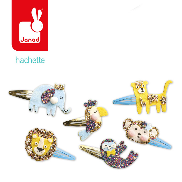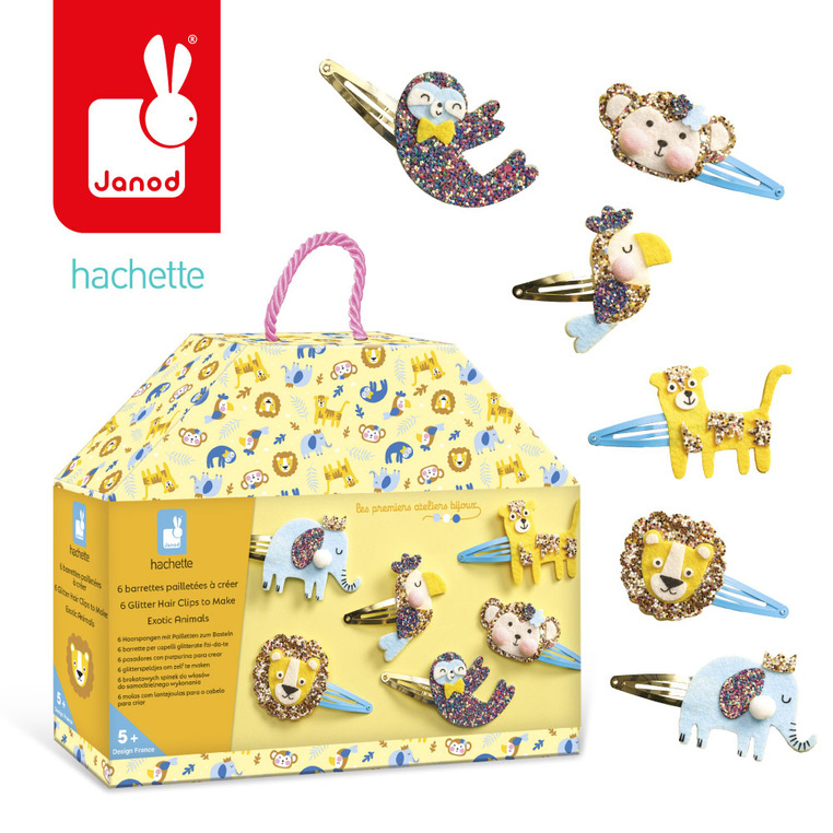 Zestaw kreatywny do tworzenia biżuterii Brokatowe spinki do włosów Egzotyczne zwierzęta Janod J09178