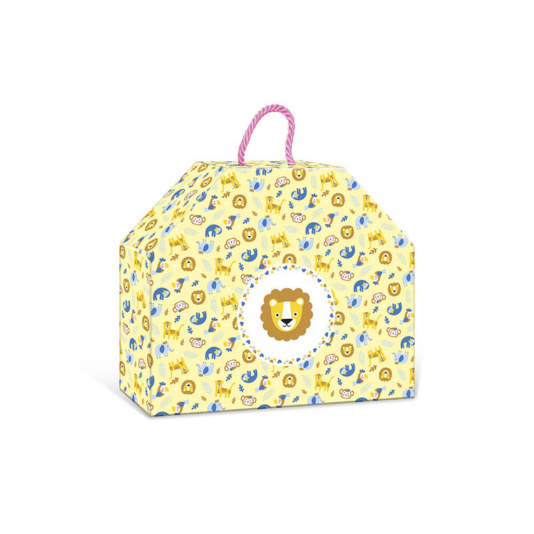 W komplecie znajduje się wszystko, co potrzebne do wykonania aż 6 oryginalnych spinek: ze słoniem, leniwcem, lwem, tygrysem, tukanem i małpką. Zestaw zawiera 6 złotych i niebieskich metalowych spinek, 3 filcowe oraz 2 samoprzylepne brokatowe arkusze z gotowymi kształtami, 4 mini pompony (w kolorze białym i odcieniach różu) oraz specjalne pianki do ich przyklejenia. Całość zapakowano w estetyczne pudełko w kształcie domku z wygodną rączką. Znajduje się w nim również szczegółowa instrukcja, dzięki której nawet początkujący jubiler poradzi sobie z przygotowaniem każdej ozdoby.