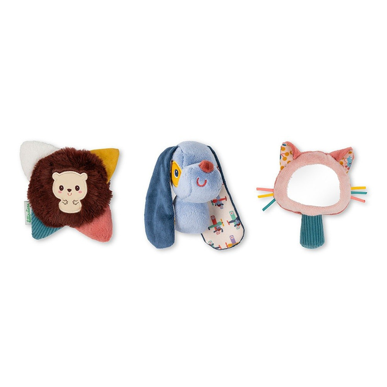 Zabawki zostały zaprojektowane tak, aby wspierać rozwój sensoryczny niemowląt, stymulując zmysł dotyku, słuchu i wzroku. Dzieci uczą się chwytania, potrząsania i manipulowania zabawkami, poznając różne struktury materiałów i odkrywając interaktywne detale, takie jak szeleszczące elementy czy lusterko. To doskonały sposób na rozwijanie małej motoryki, koordynacji ręka–oko oraz ciekawości świata malucha.