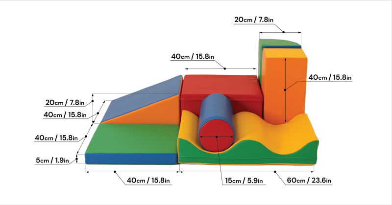 Zestaw sprawdzi się zarówno w domu, jak również w przedszkolu, żłobku, sali terapeutycznej czy podczas rehabilitacji - czyli wszędzie tam, gdzie dzieci potrzebują ruchu i bezpiecznej przestrzeni do twórczego działania.