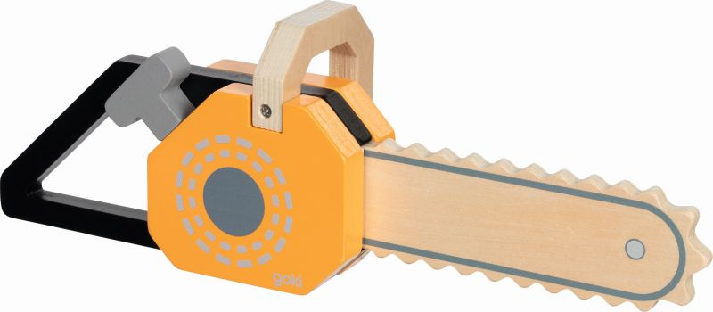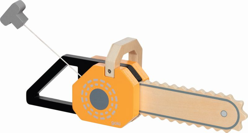 W małym, domowym warsztacie zawsze jest coś do zrobienia. Czasem trzeba przygotować deski na nowy domek dla lalek, a innym razem przyciąć elementy do budowy mostu dla resoraków. Do takich zadań przydaje się piła łańcuchowa z dźwiękiem Goki, która pozwoli małemu majsterkowiczowi poczuć się jak prawdziwy drwal lub stolarz. Wystarczy pociągnąć za szarą rączkę, aby narzędzie wydało realistyczny odgłos pracy, dodając zabawie autentycznego charakteru. Drewniana konstrukcja jest trwała i przyjemna w dotyku, a jej kształt dopasowany do małych dłoni ułatwia wygodne trzymanie.