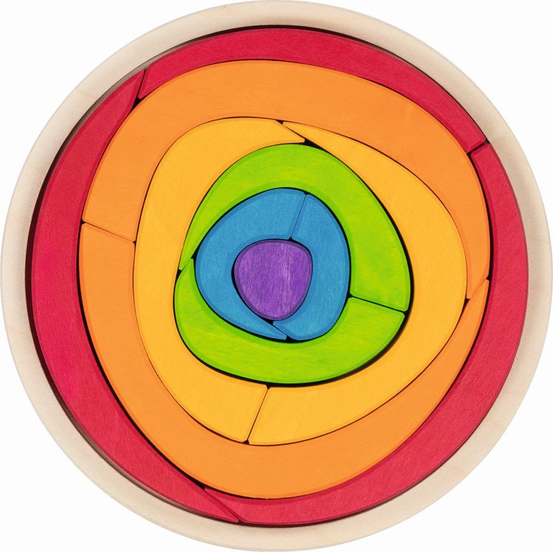 Kiedy małe rączki sięgają po klocki, otwiera się przed nimi świat pełen kolorów, kształtów i wyobraźni. Drewniana układanka Oculus Goki zabierze Twoje dziecko w niezwykłą podróż po krainie precyzji i koncentracji. Zestaw składa się z 12 półokrągłych elementów, które tworzą harmonijny, okrągły wzór przypominający magiczne oko.