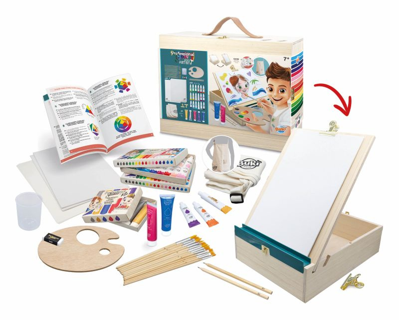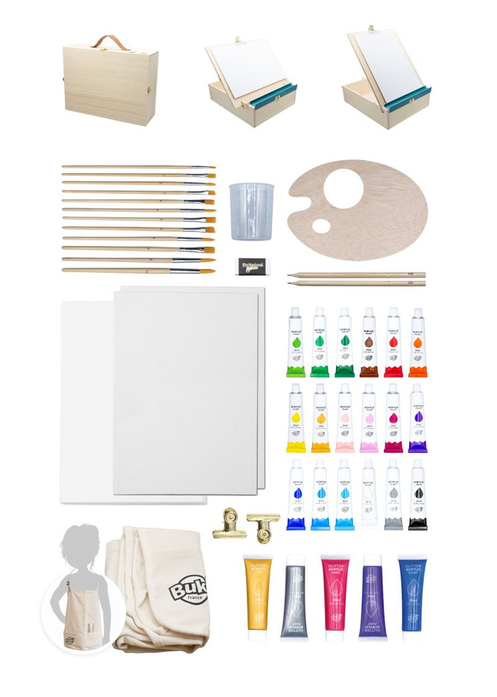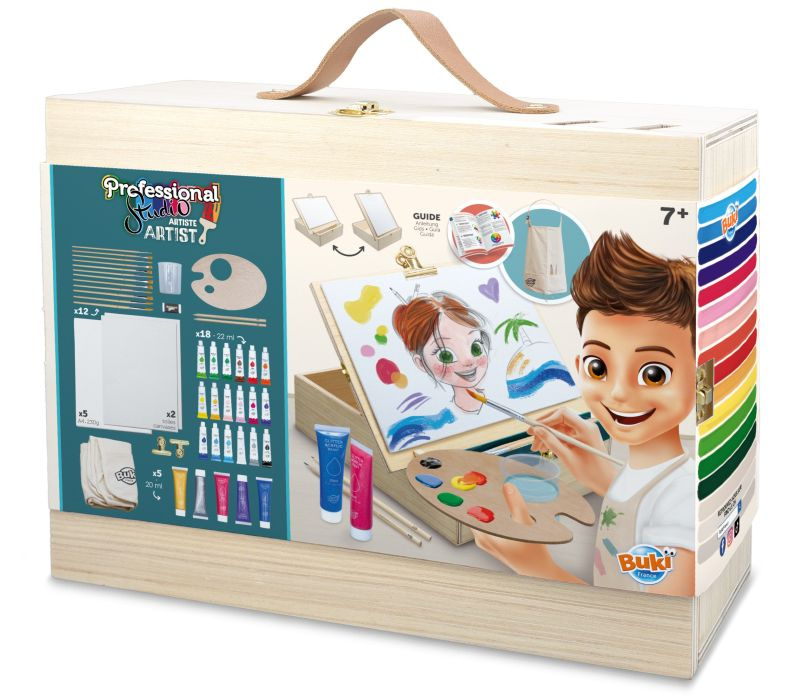 Kiedy dziecko odkrywa w sobie pasję do sztuki, potrzebuje miejsca i narzędzi, które pozwolą mu rozwinąć skrzydła wyobraźni. Drewniana walizka artysty z akcesoriami Buki to prawdziwa pracownia malarska zamknięta w eleganckim pudełku, które z łatwością można zabrać ze sobą w każde miejsce.
