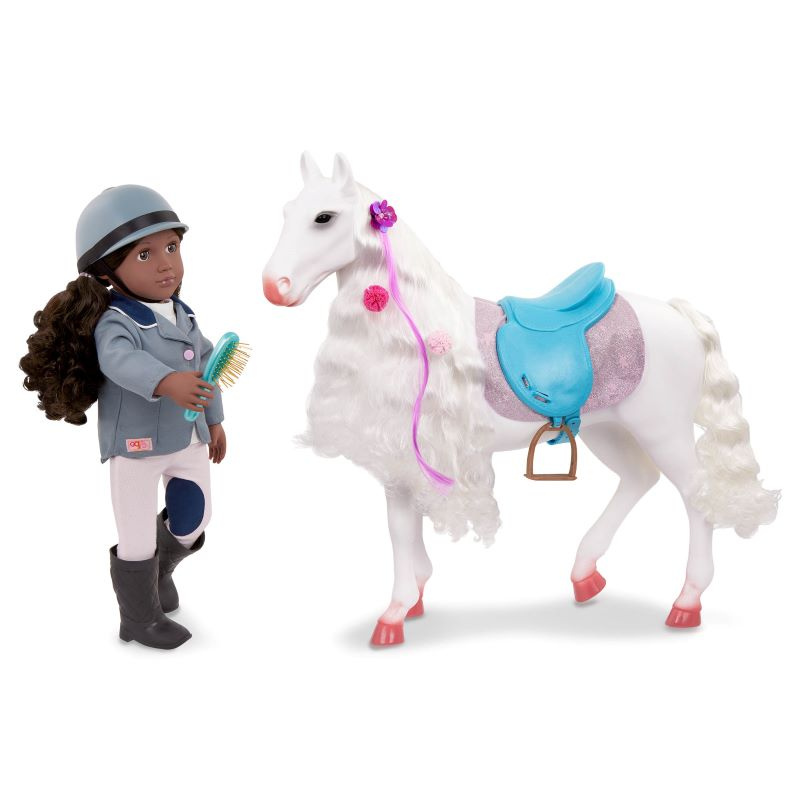 Produkt przeznaczony jest dla dzieci od 3. roku życia i w pełni zgodny z normami bezpieczeństwa obowiązującymi w Europie, Kanadzie i USA. Duży, efektowny koń dla lalek o wysokości 46 cm to doskonały pomysł na prezent – zarówno dla młodych fanek jeździectwa, jak i miłośniczek marki Our Generation.