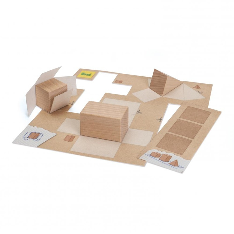 Dzięki możliwości manipulowania elementami dziecko przypisuje figurom właściwości takie jak liczba ścian, kątów, kształt podstawy czy objętość. Zabawka nie tylko rozwija logiczne myślenie, ale również umożliwia zrozumienie relacji przestrzennych poprzez porównywanie widoków z różnych stron oraz powierzchni bocznych. Wartość edukacyjną zestawu zwiększają specjalne maty i elementy do wycinania, z których można tworzyć formy do budowy brył.