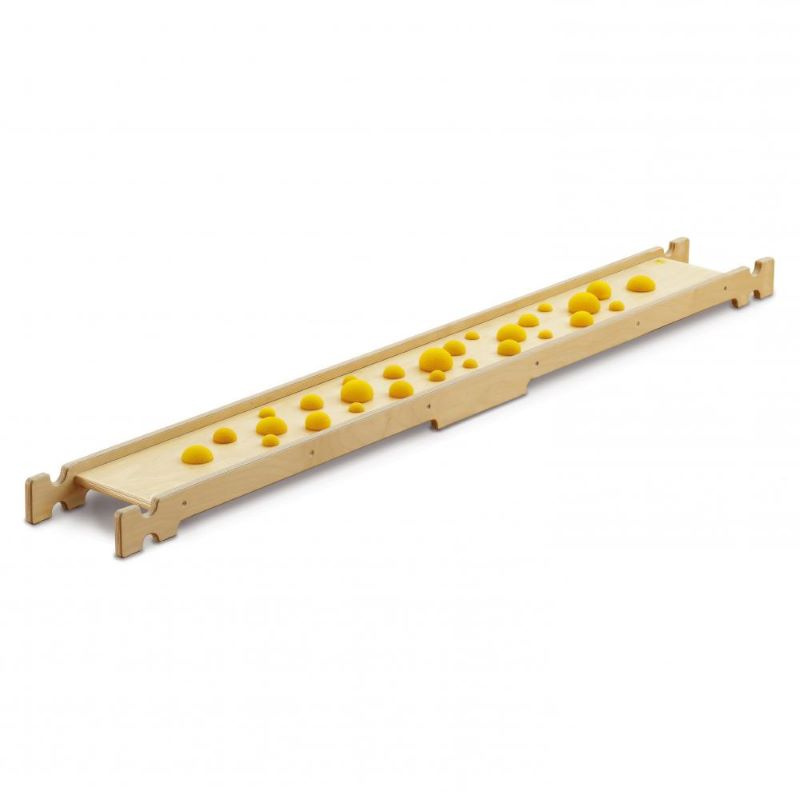 Chodzenie boso wzmacnia mięśnie stóp i nóg, poprawia równowagę i rozwija zmysły dziecka. Zróżnicowane powierzchnie sprawiają, że każdy krok staje się treningiem dla ciała i stymulacją dla zmysłów w bezpieczny sposób, bez ostrych przedmiotów i zagrożeń dla stóp. Dziecko uczy się kontrolować swoje ciało, a jednocześnie odkrywa różne tekstury i odczucia pod stopami, co wspiera jego rozwój sensoryczny i motoryczny.