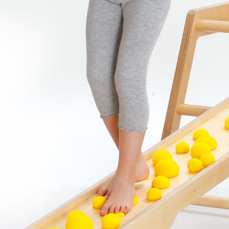 Ścieżka Piłeczki piankowe Erzi idealnie się sprawdzi do treningu balansu ciała oraz równowagi. Na ścieżce znajduje się 27 piankowych piłek, które można dobrowolnie przemieszczać, sama ścieżka ma 190 cm długości i wytrzymuje do 100 kg. Jej konstrukcja jest stabilna i przyjazna dzieciom, a po zabawie można ją łatwo zawiesić na ścianie na dedykowanym uchwycie ściennym, oszczędzając miejsce w pokoju czy sali edukacyjnej. Dodatkowo, dzięki starannie dobranym materiałom, ścieżka zapewnia komfort i przyjemne doznania dotykowe podczas każdego kroku. Zachęcamy do sprawdzenia innych ścieżek sensorycznych dostępnych w naszym sklepie.