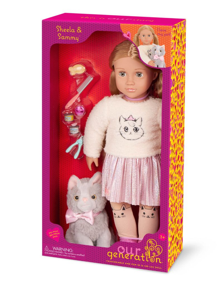 - Najlepsza przyjaciółka miłośniczki zwierząt - Sheela nie rozstaje się ze swoim uroczym kotkiem kartuskim. Dzięki dołączonym akcesoriom dziecko może wcielić się w opiekuna zwierzaka i dbać o niego jak o prawdziwego pupila.