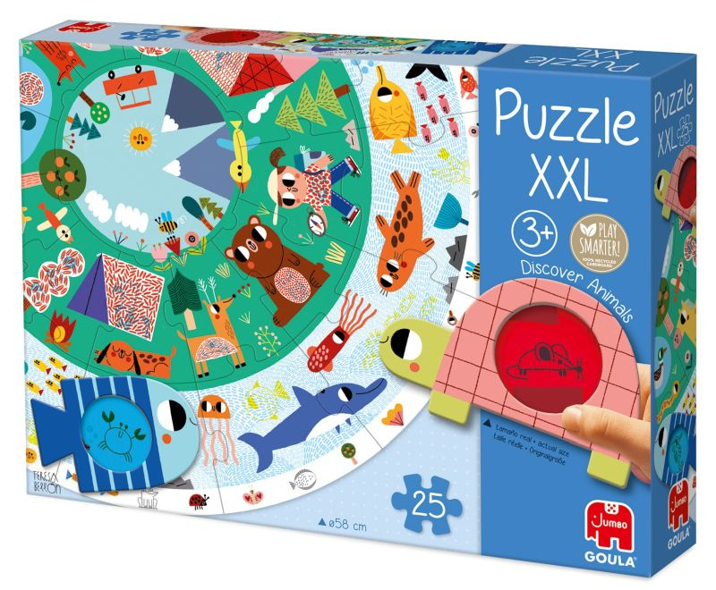Puzzle dla dzieci okrągłe XXL Odkryj zwierzęta Goula rozwija spostrzegawczość, cierpliwość i koncentrację, a dodatkowo daje mnóstwo satysfakcji z samodzielnego odkrywania nowych szczegółów. To świetny pomysł na wspólne chwile, podczas których rodzice mogą obserwować, jak dziecko uczy się cierpliwości i logicznego myślenia, jednocześnie świetnie się bawiąc.