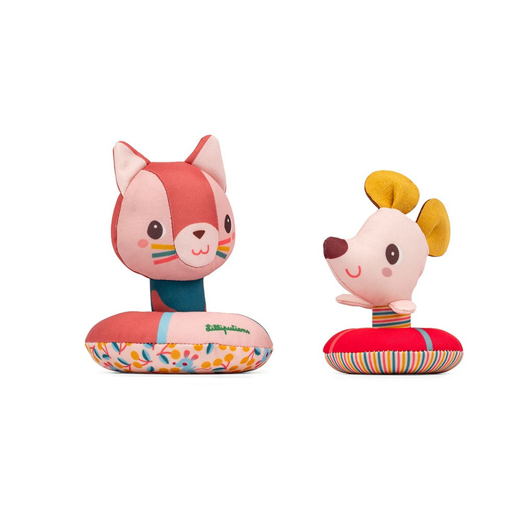 Zestaw przytulanek do kąpieli Lilliputiens z uroczymi postaciami Kotki Jeanne i Myszki Niny to ciekawy sposób, aby zamienić codzienną kąpiel w pełną radości, kreatywną zabawę. Każda z przytulanek ma własne koło do pływania, dzięki czemu doskonale unosi się na wodzie i inspiruje do wymyślania wesołych historii podczas kąpieli.