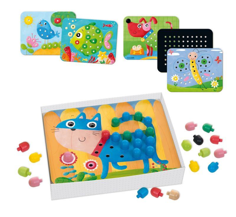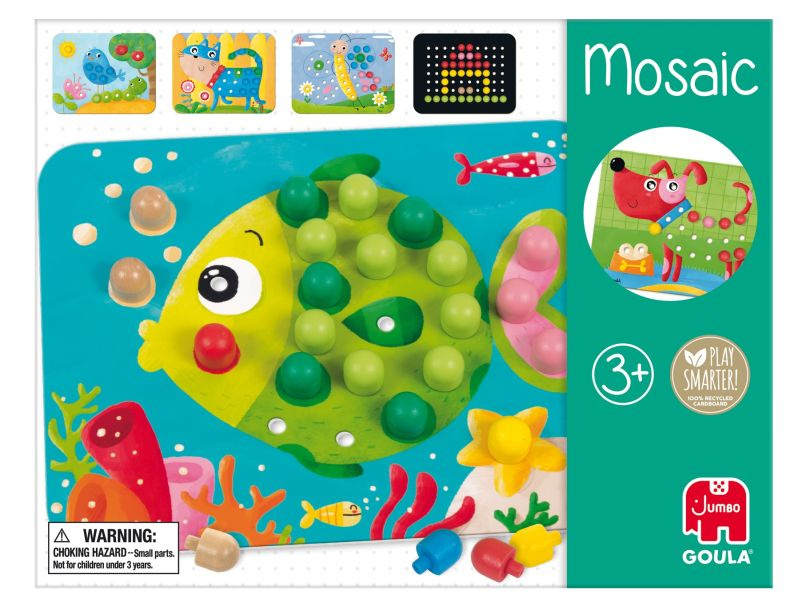Kolorowe rybki, motylki i wesołe pieski już czekają, by dziecko tchnęło w nie kolorową energię. Wystarczy sięgnąć po drewnianą Mozaikę Goula, by rozpocząć pełną wyobraźni przygodę. To zabawka, która rozwija kreatywność, ćwiczy koncentrację i wspiera koordynację wzrokowo-ruchową, a przy tym dostarcza mnóstwo radości.