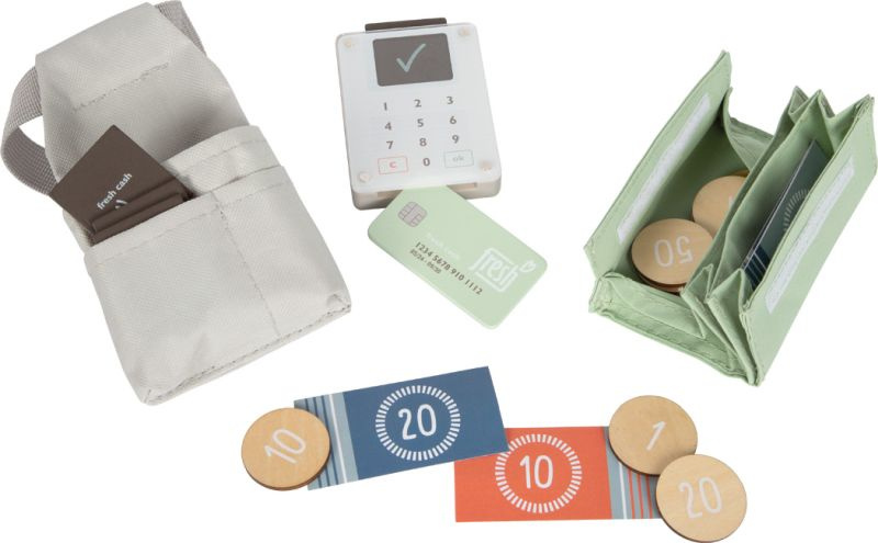 - portfel z pieniędzmi, kartami płatniczymi oraz nowoczesnym terminalem,