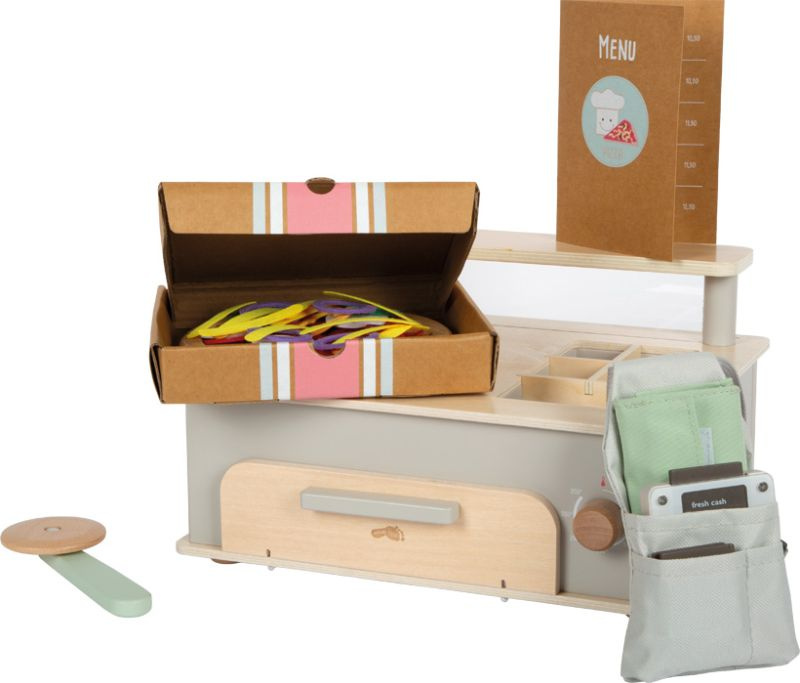 Zabawa w pizzerię uczy dzieci planowania, logicznego myślenia, liczenia i współpracy. Rozwija też motorykę, wyobraźnię i umiejętność odgrywania ról, a przy tym daje mnóstwo radości z samodzielnego działania. Drewniane elementy są trwałe i przyjemne w dotyku, a neutralne kolory pasują do każdej kuchni dziecięcej. To doskonały pomysł na prezent dla małych kucharzy, którzy z radością zaproszą domowników do swojej pierwszej restauracji.