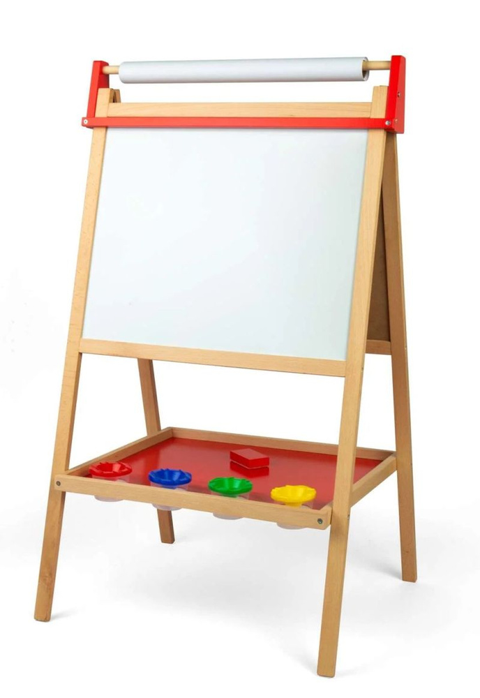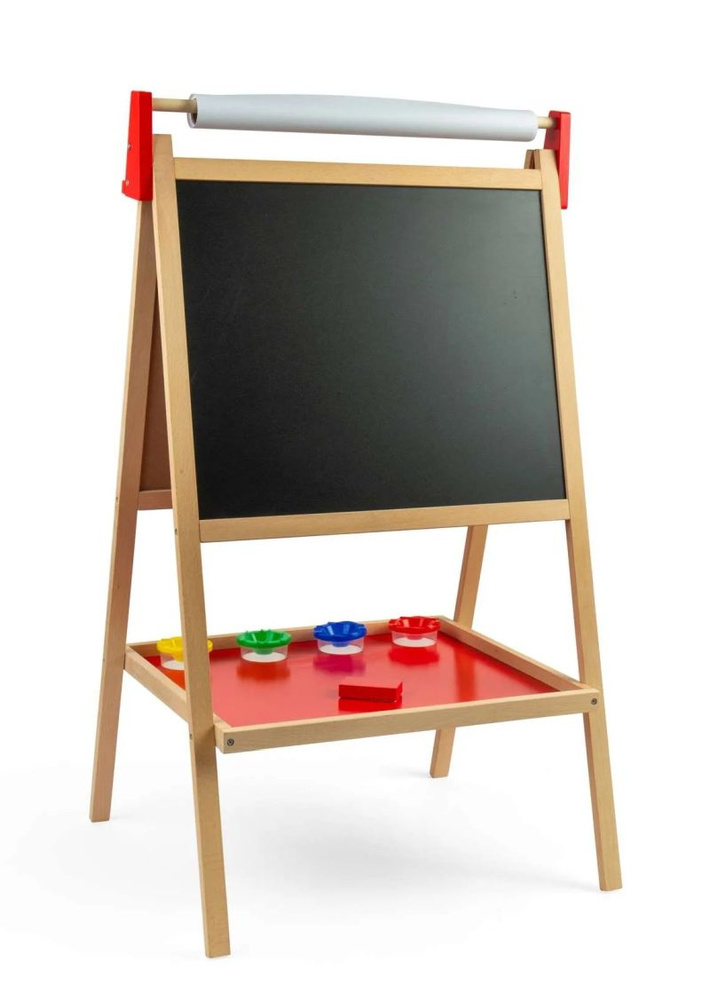 Zestaw zawiera 4 kolorowe kubeczki na akcesoria lub farbki, rolkę papieru oraz wygodną półkę, na której zmieszczą się kredki, kreda czy gąbka. Solidna, drewniana konstrukcja zapewnia stabilność, a klasyczny wygląd pięknie wpasuje się w każdy dziecięcy pokój. Tablica rozwija zdolności manualne, kreatywność i wyobraźnię przestrzenną, jednocześnie ucząc dziecko planowania i cierpliwości.