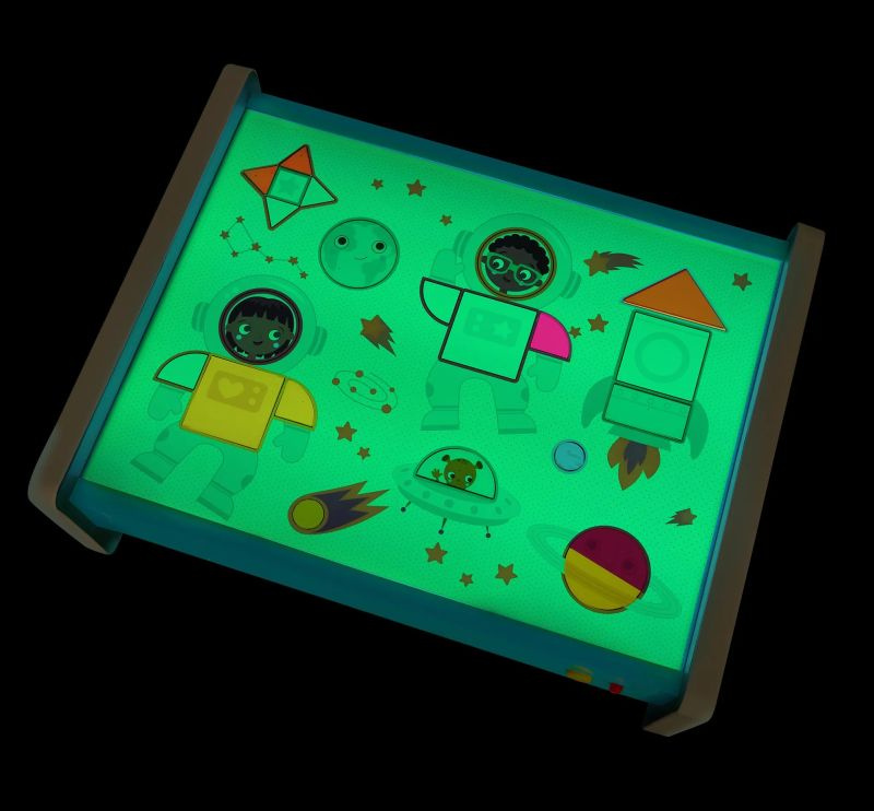 Stolik świeci w 5 kolorach i ma 2 poziomy jasności, dzięki czemu każde dzieło nabiera wyjątkowego charakteru. Można podłączyć go przez USB-C lub zasilać bateriami, co sprawia, że świetna zabawa nie zna ograniczeń.
