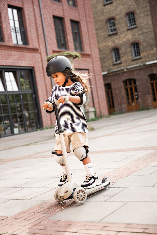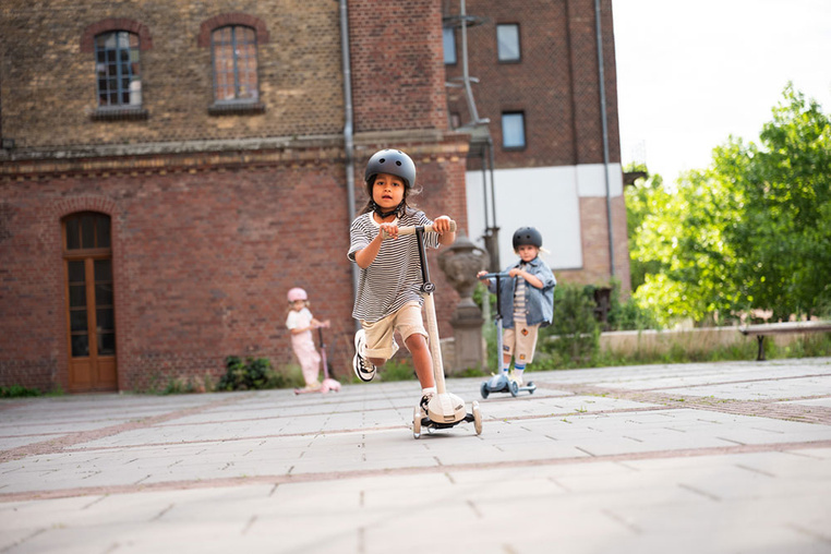 Innowacyjny, podwójny sposób kierowania hulajnogą zapewnia zupełnie nowe wrażenia z jazdy: dzieci mogą sterować hulajnogą tradycyjnie kręcąc kierownicą oraz intuicyjnie przenosząc ciężar ciała na boki. Jest to idealne rozwiązanie do ćwiczenia równowagi, świadomości ciała i koordynacji w zabawie. Ten elastyczny sposób kierowania hulajnogą rozwija się wraz z umiejętnościami młodych użytkowników, wzmacnia ich pewność siebie, wspiera rozwój motoryczny i pozwala im aktywnie i samodzielnie odkrywać swój styl jazdy.