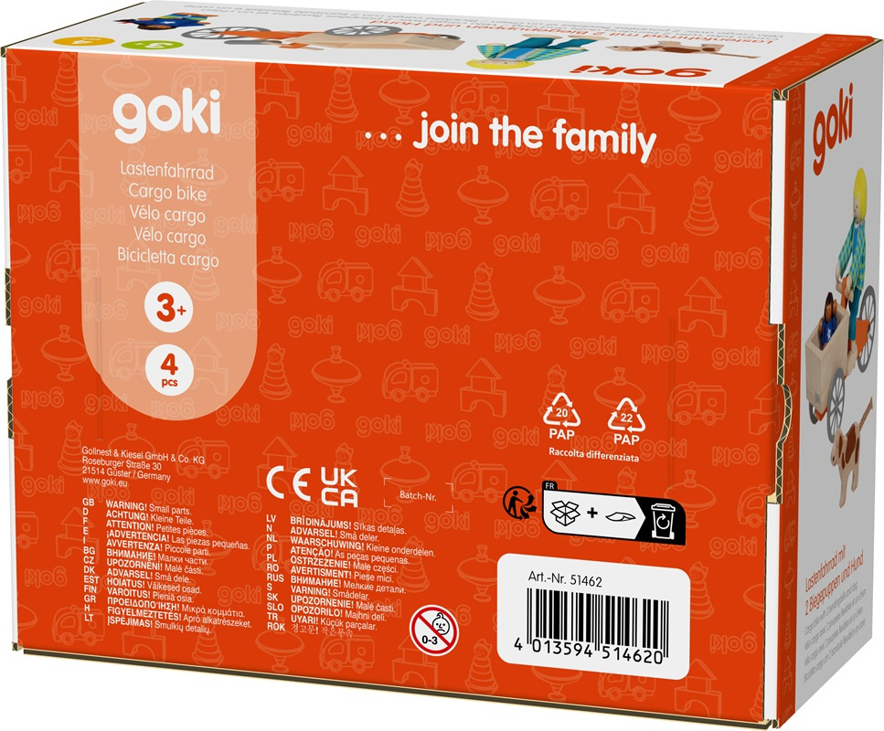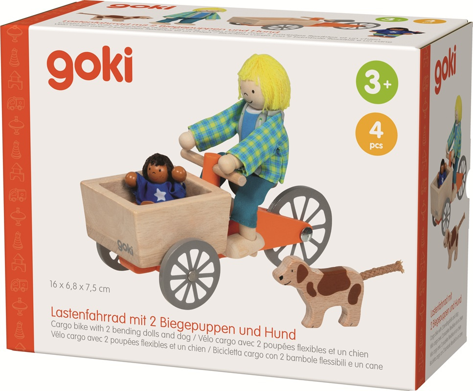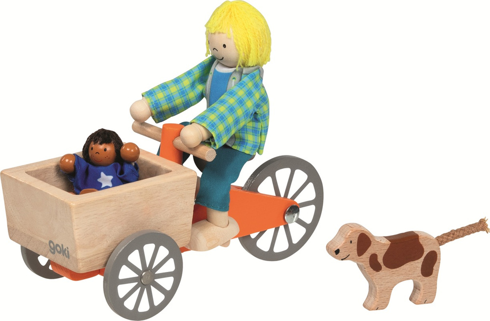 Drewniany rower towarowy z lalkami i psem to doskonały pomysł na upominek dla dzieci kochających zabawę w dom, rodzinę i miasto. Sprawdzi się zarówno jako samodzielna zabawka, jak i część większego świata zabawkowego.