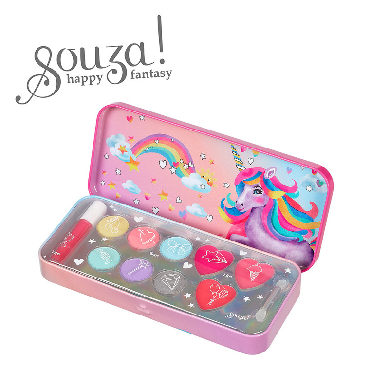 Kosmetyki do makijażu dla dzieci w metalowej kasetce zestaw 10 el. Jednorożec Souza! 107426
