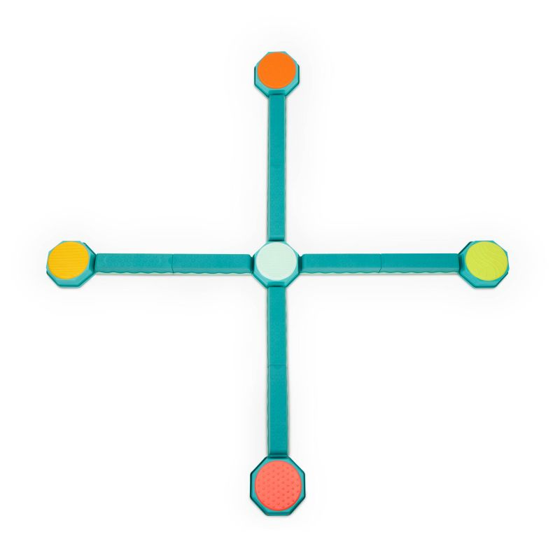 • 5 wielokątnych kolorowych pól, o przekątnej ok. 25cm, każde pokryte innymi wypustkami sensorycznymi.