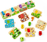 Drewniana układanka puzzle Nauka liczenia 10 klocków i cyfry Na farmie Bigjigs 36061