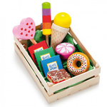 Drewniana skrzynka ze słodyczami 28138 Erzi, zabawy w sklep dla dzieci kuchnie