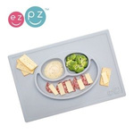EZPZ Silikonowy talerzyk z podkładką 2w1 Happy Mat pastelowa szarość EUHMP003- EZPZ, naczynia dla dzieci