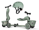 Zestaw SCOOTANDRIDE Kask + Highwaykick1 2w1 jeździk i hulajnoga z zamykanym schowkiem Green Lines