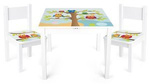 Biały stolik dla dzieci i dwa krzesełka, "Sowy w leśnej szkółce", meble do pokoju dziecięcego