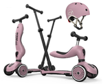 Zestaw SCOOTANDRIDE Kask + Highwaykick1 Push and Go 2w1 jeździk i hulajnoga z rączką do prowadzenia Wildberry