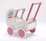 Biało-różowy, głęboki wózek z drewna dla lalki - zabawki dla dziewczynek