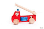 Drewniany samochód i jego właściciel "Dzielny strażak", 41830-BAJO - samochody zabawki