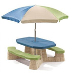 Stół piknikowy z parasolem i ławeczkami STEP2 8438 dla dzieci do zabawy i odpoczynku na świeżym powietrzu