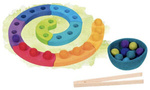 Drewniana układanka sorter nauka liczenia cyfr liter i kolorów Goki 58357 zabawka edukacyjna