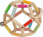Elastyczna drewniana kula z dzwoneczkiem kolorowe paski 65195-Goki Baby, grzechotka dla dzieci