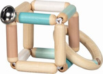 Elastyczna drewniana grzechotka z dzwoneczkiem niebieska bryła Goki 65298 zabawki dla niemowląt