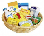 Drewniane artykuły spożywcze i gospodarstwa domowego w koszyczku Zabawa w sklep lub gotowanie Goki 51713